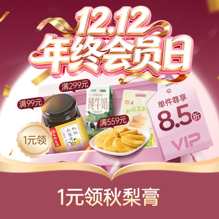 黄金/白金会员:有效满99元,送1元兑换枇杷秋梨膏;有效满299元,加送1元兑换纯牛奶1箱;