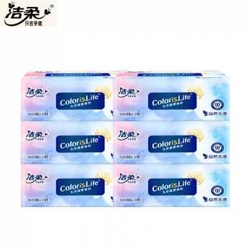 洁柔抽纸纸面巾(缤纷软抽)3层100抽*6包